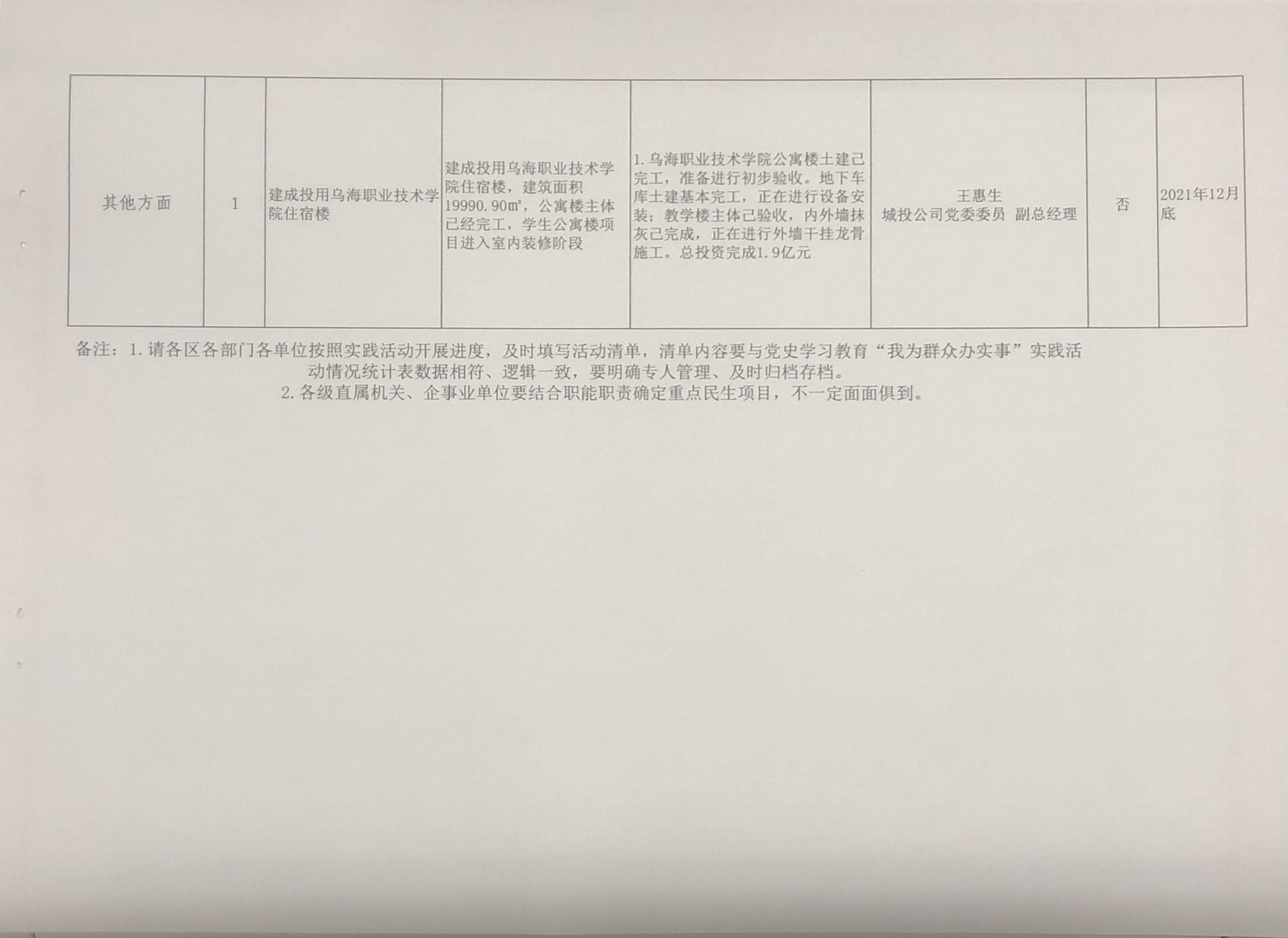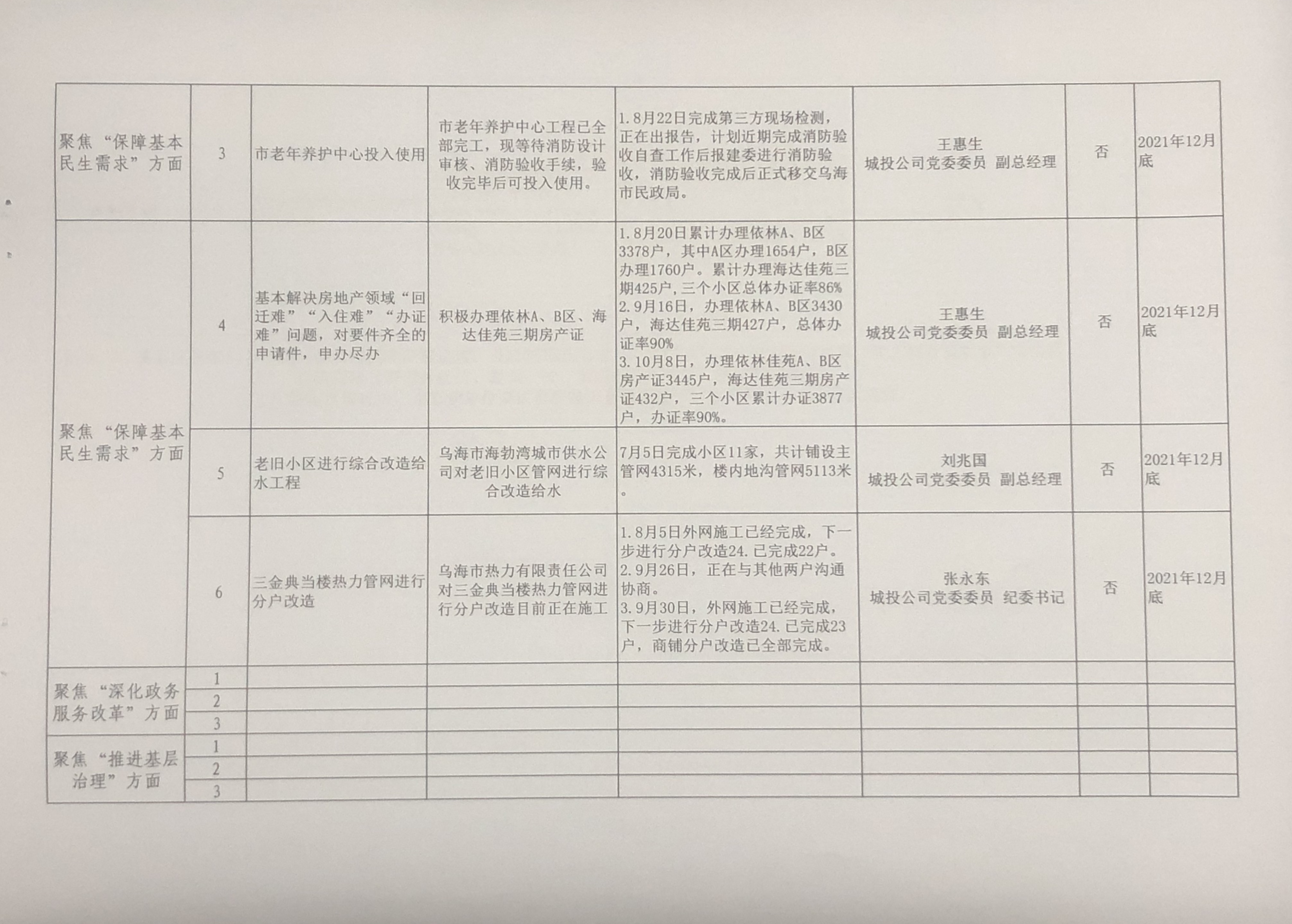 - 2024-01-08烏海市城市建設投資集團有限責任公司各直屬黨組織2023年度“書記項目”推動落實情況公示