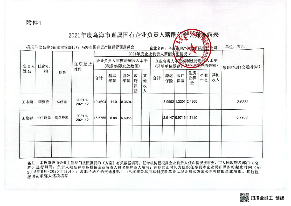 烏海市房產(chǎn)測(cè)繪有限責(zé)任公司2021年度企業(yè)負(fù)責(zé)人薪酬信息公開(kāi)披露表