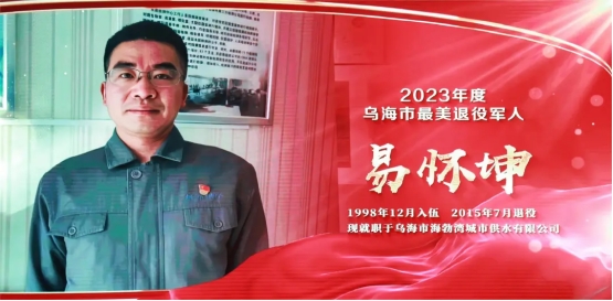 市城投集團(tuán)公司職工韓江濤,市城投集團(tuán)所屬子公司烏海市海勃灣城市供水公司職工易懷坤,烏海市污水處理公司職工魏軍,喜獲“2023年度最美退役軍人”榮譽(yù)稱號。