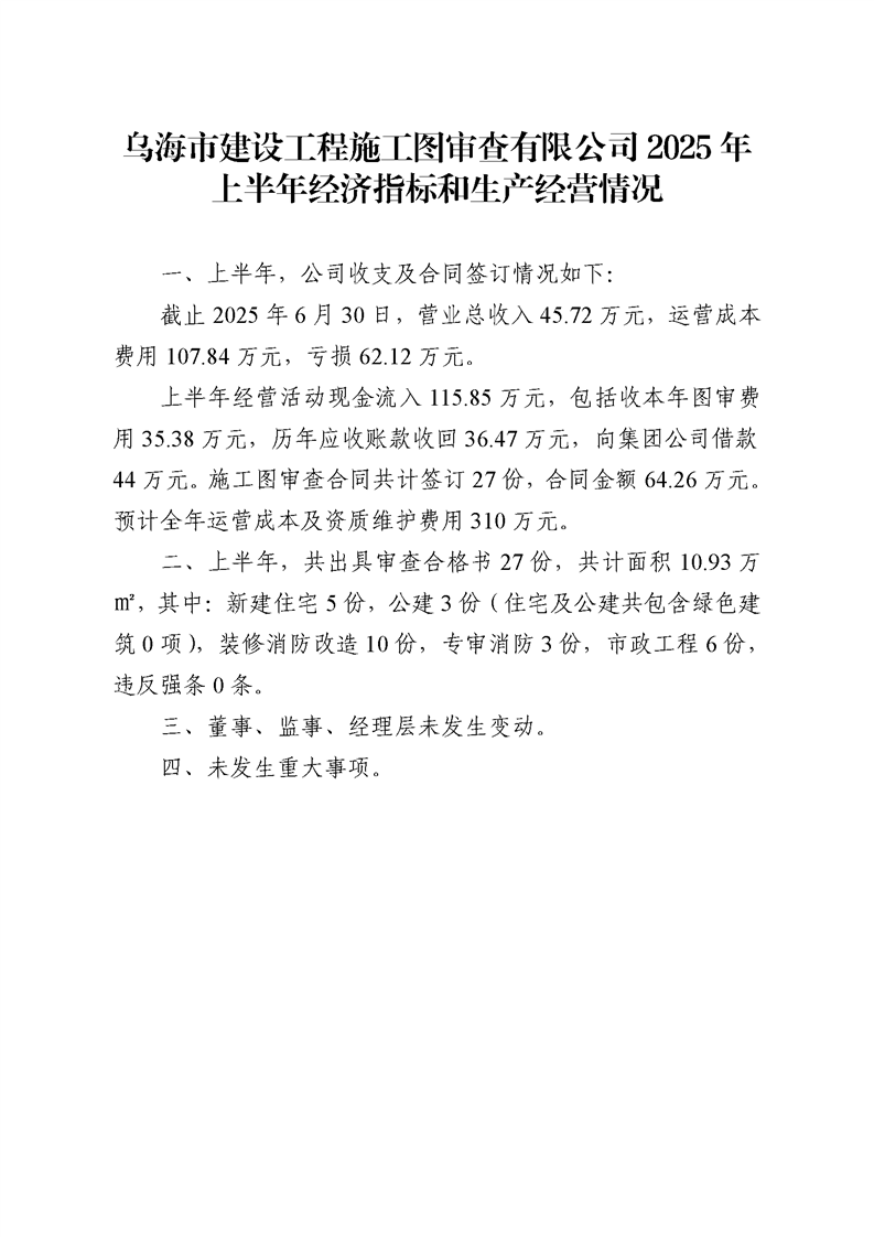 - 2025-03-10烏海市建設(shè)工程施工圖審查有限公司2024年度信息公開(kāi)報(bào)告