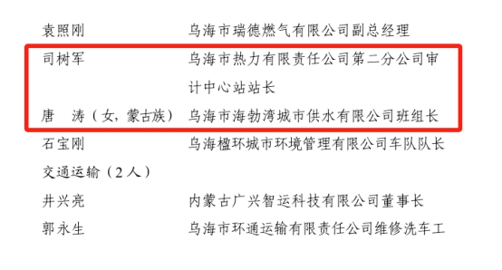 烏海市表彰勞動(dòng)模范與先進(jìn)工作者!城投集團(tuán)公司4名職工榜上有名